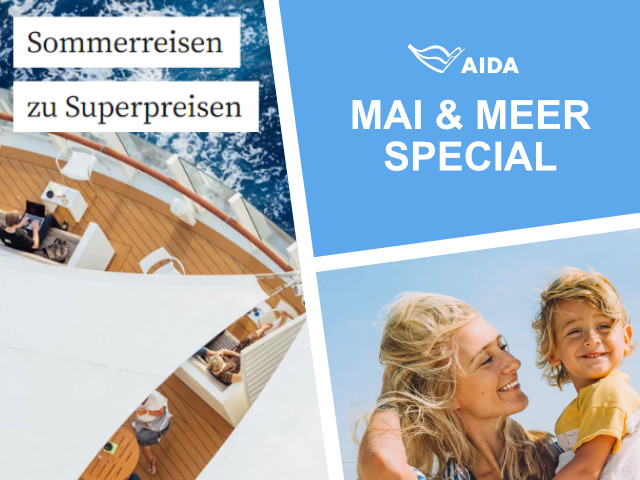 Je Mai, umso Meer … sehnen Sie sich den Sommerurlaub herbei? Das verstehen wir nur zu gut. Deswegen wird bei AIDA jetzt aus dem Wonnemonat der „Sonnemonat“, denn noch bis 31. Mai buchen Sie AIDA Sommerreisen zu Superpreisen – schon ab 399 € p. P.!